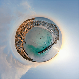 photos taken from a professional drone. The photos were then digitally stitched together to form a 'tiny planet.'