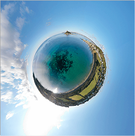 photos taken from a professional drone. The photos were then digitally stitched together to form a 'tiny planet.'