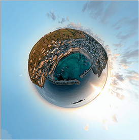photos taken from a professional drone. The photos were then digitally stitched together to form a 'tiny planet.'