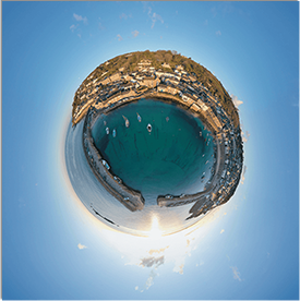 photos taken from a professional drone. The photos were then digitally stitched together to form a 'tiny planet.'