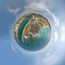 photos taken from a professional drone. The photos were then digitally stitched together to form a 'tiny planet.'