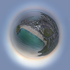 photos taken from a professional drone. The photos were then digitally stitched together to form a 'tiny planet.'