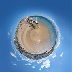 photos taken from a professional drone. The photos were then digitally stitched together to form a 'tiny planet.'
